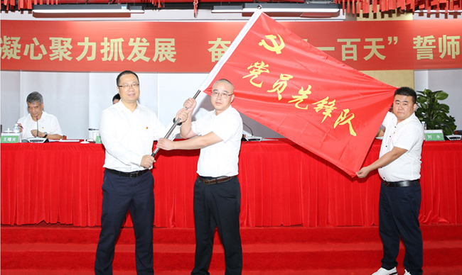 会上,金沙澳门(中国)唯一官方网站临时党委副书记、高级副总裁谢斐宣读了公司临时党委成立党员先锋队和青年突击队的通知文件,在随后举行的授旗仪式上,来自一线的队员纷纷宣誓,要自觉履行使命当担,主动作为,达成目标,干出“不一样的精彩”,为“百日会战”献礼,不辜负组织的信任和重托。