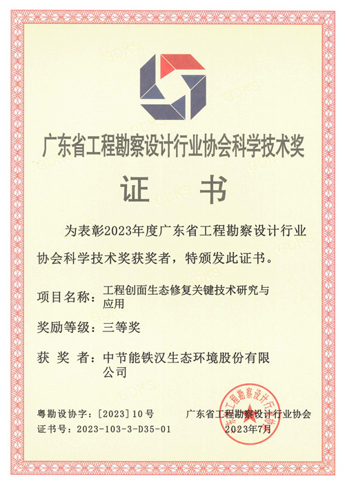 喜报 | 金沙澳门(中国)唯一官方网站一项生态修复技术获2023年度广东省勘察设计行业协会科学技术奖三等奖