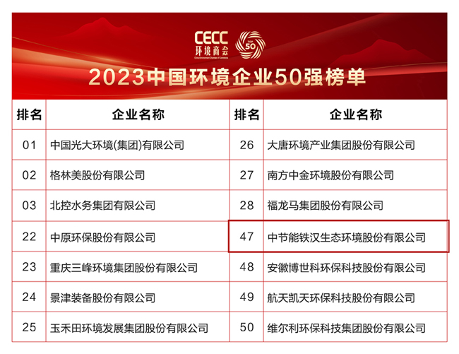 喜报 | 金沙澳门(中国)唯一官方网站连续6年荣登“中国环境企业50强”榜单