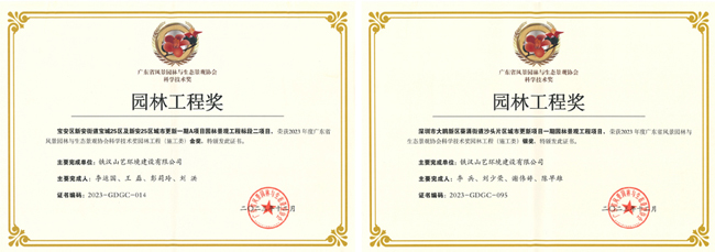 铁汉山艺作为国家级高新技术企业和深圳市专精特新企业,凭借深耕生态景观、生态环保行业多年的成功经验和匠心打造的精品工程,近年来已获得包括中国建设工程鲁班奖(国家优质工程)在内的国家、省、市级优良工程奖25项,科技奖8项。此次再添2项殊荣,将激励铁汉山艺不断追求卓越,坚守匠心铸造更多精品,为推动城乡人居环境持续改善、美丽中国建设贡献积极力量。