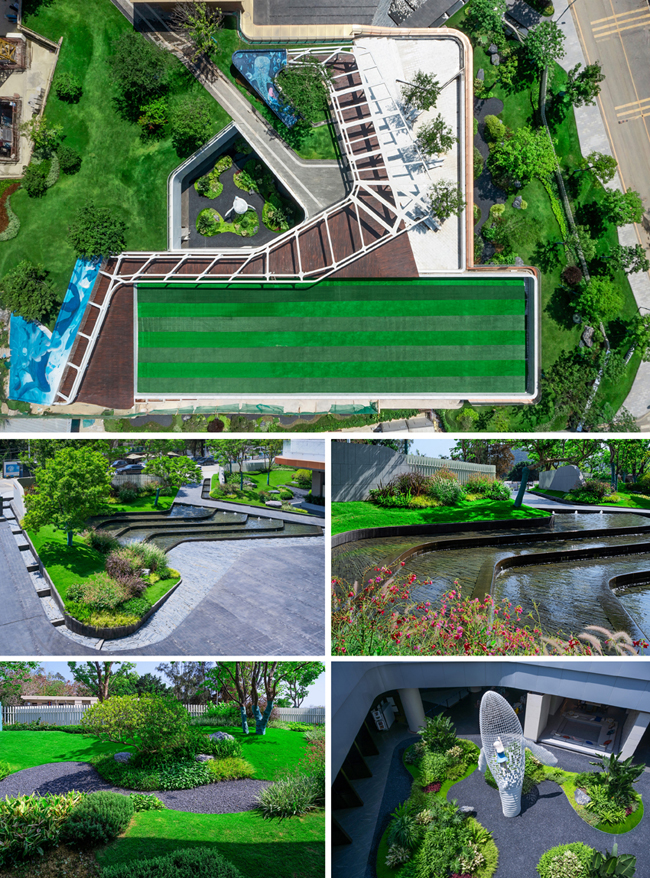 新安项目位于深圳市宝安区,旨在打造生态花园式居住环境,从入口到公共空间,自然气息浓郁,现代元素富含其中。通过商业下沉和弧形线条的景观设计,满足人们休闲需求,为居住环境注入活力和动感。屋顶花园营造一个完整的园林生态系统,与周边环境和城市天际线相融合。