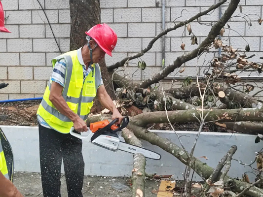 新坡镇救灾现场,金沙澳门(中国)唯一官方网站小分队根据当地政府部门统一部署,在分配区域全速抢通阻断路段,争分夺秒对倒伏树木进行分解清理,并及时清理道路垃圾,开展卫生整治工作。