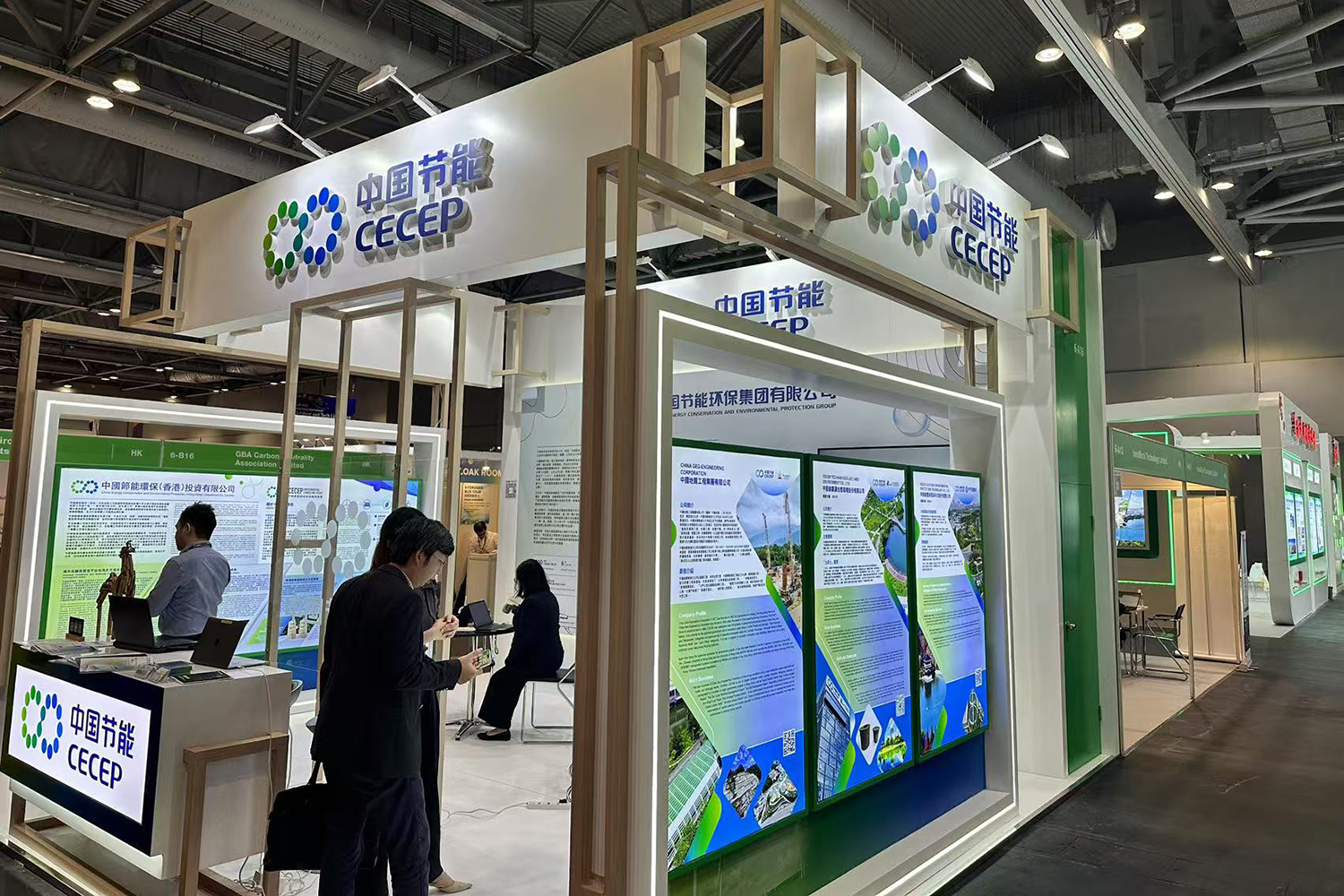 展会期间,香港公司向特区政府、参访团、参展商和参观市民等,讲解了中国节能在节能环保领域的旗舰地位以及综合解决方案能力,并向各国及各地区参访人员展现出合作意愿。