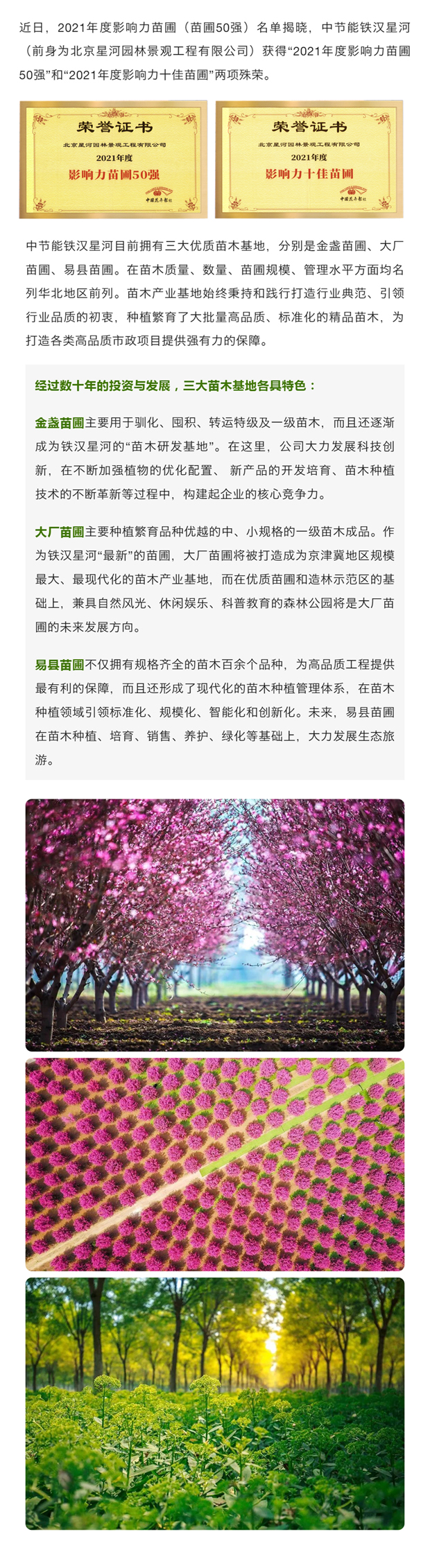 金沙澳门(中国)唯一官方网站星河荣获全国苗圃50强和十佳苗圃两项大奖