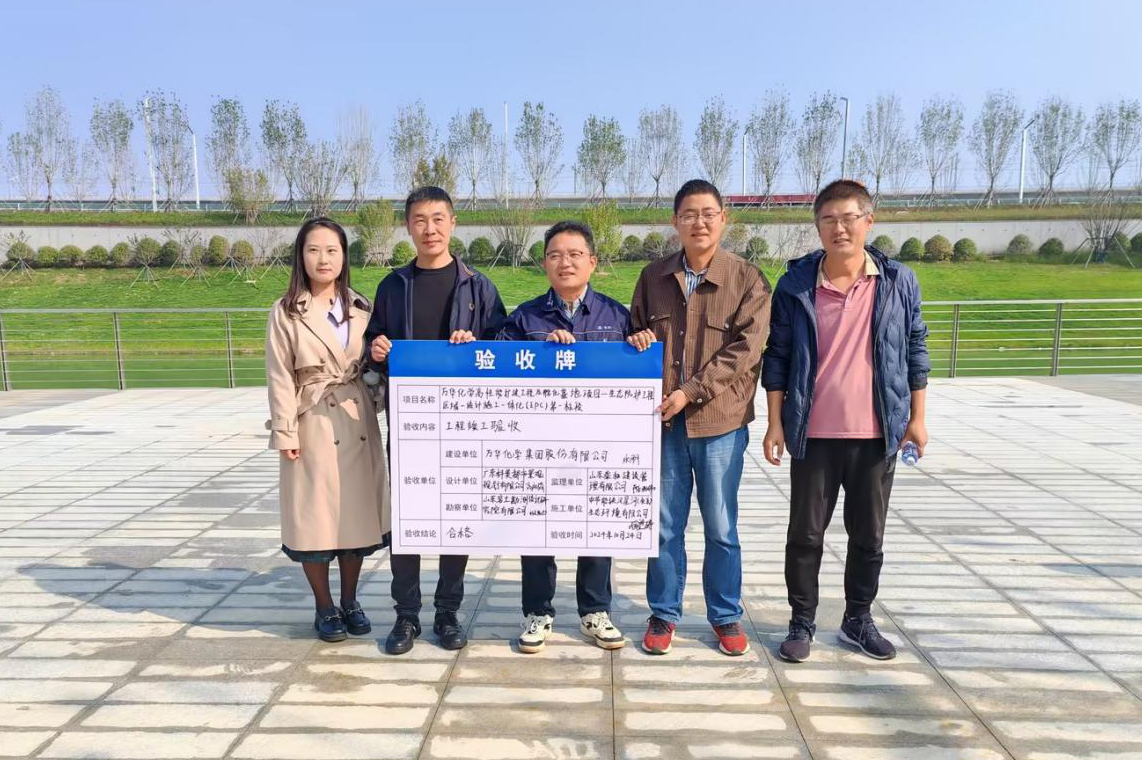 万华化学高性能扩建工程及孵化基地项目生态防护工程区域设计施工一体化(EPC)总承包第一标段项目顺利通过竣工验收。近日,经项目竣工验收组综合核查,该项目完成了合同约定的各项建设内容,符合设计要求,技术资料齐全、完整、规范,工程质量综合评定合格,达到竣工验收条件,同意竣工验收。 项目位于山东省烟台市,是铁汉星河2024年度重点建设项目之一,实施区域位于烟台开发区黄金河,主要包括景观铺装小品、绿化、给水、排水等工程。